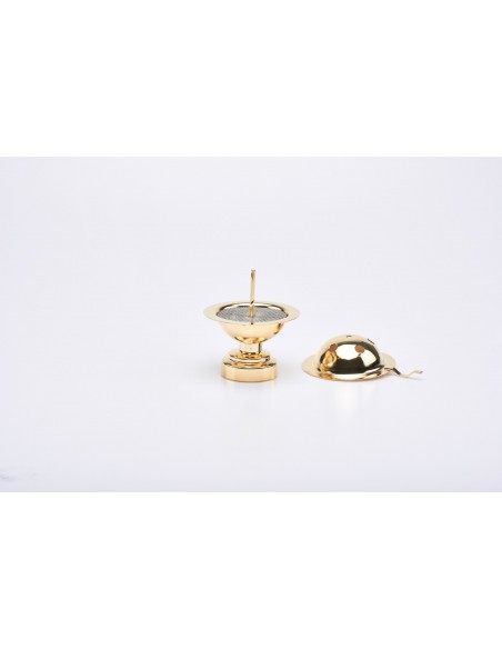 Brucia in censo a camino dorato diametro cm10,5x11 compreso nel prezzo una confezione da 10 carboncini e una bustina di incenso aromatizzato